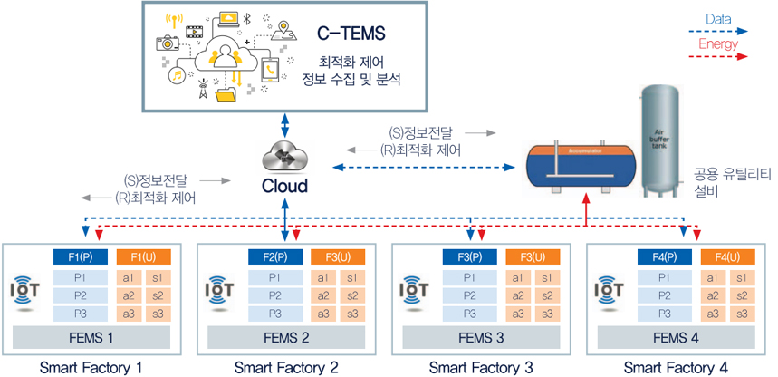 단위 공장 클러스터화, 에너지(Power, Steam, Air 등) 공유 및 거래를 위한 에너지 공용 유틸리티 설비와 4차 산업혁명 핵심기술인 AICBMS 기술을
