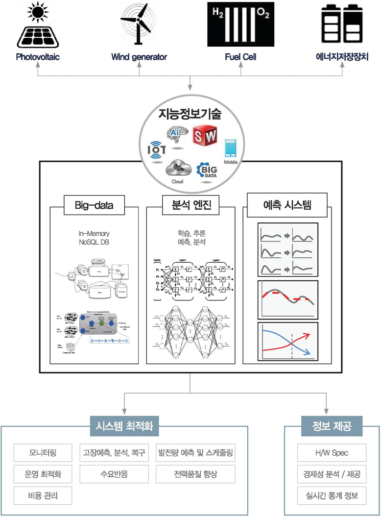 디지털화 된 신재생에너지원 발전 및 기상 정보 등을 AICBMS기술을 통해 수집·저장·가공·분석·예측하고
